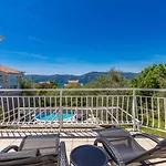 يمكن للضيوف أثناء إقامتهم في فيلا Cozy Holiday House In Brzac المكونة من 2 غرفة نوم الاسترخاء على الشرفة مع حوض السباحة.